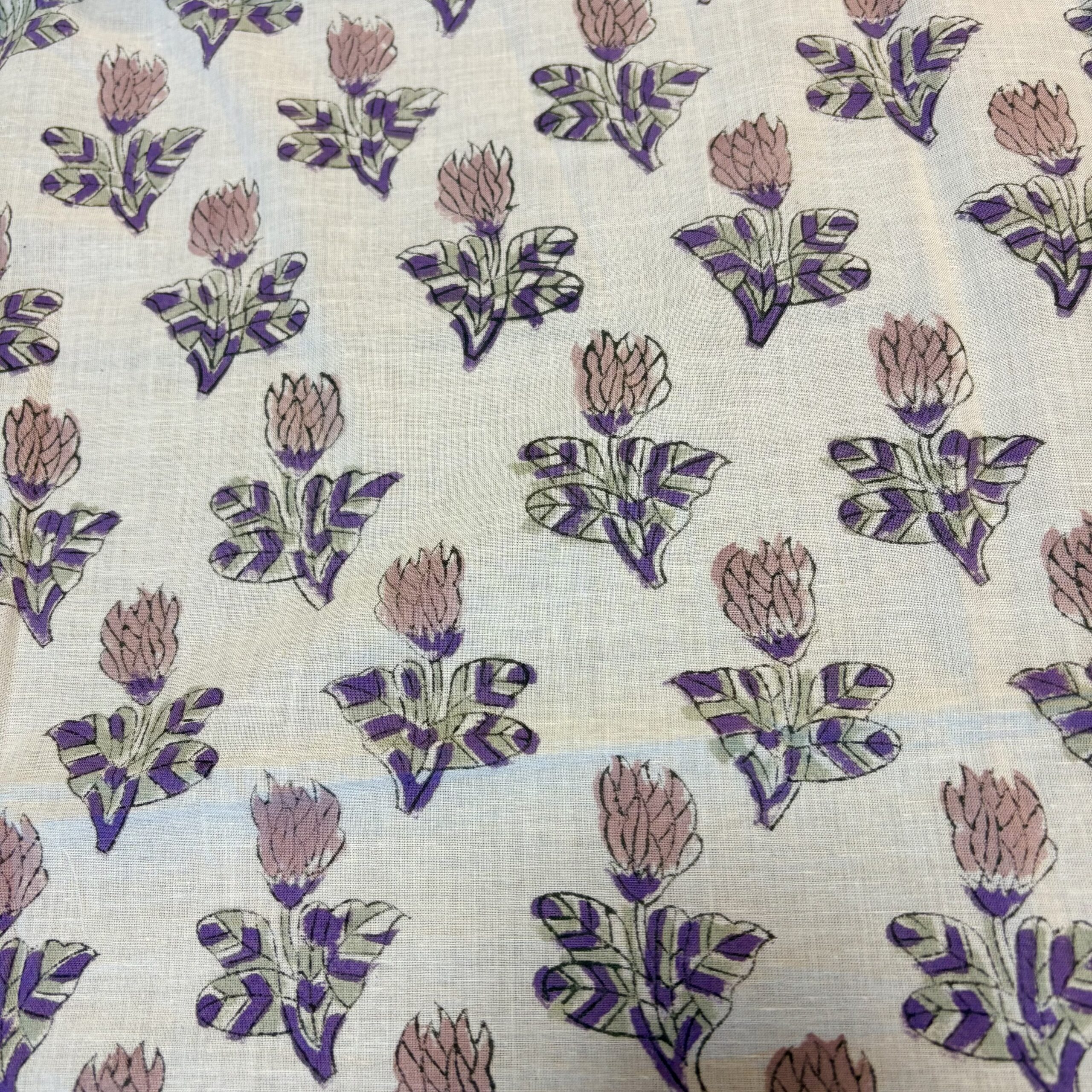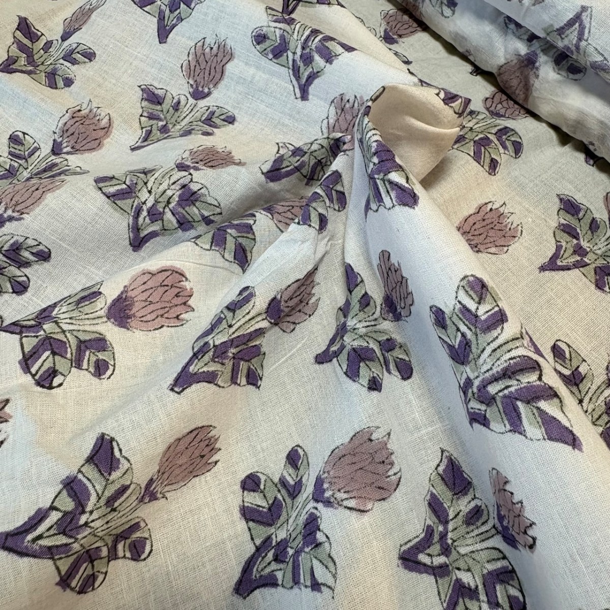 インドの職人による、伝統的な手仕事「ブロックプリント」で仕立てられたコットン生地です。