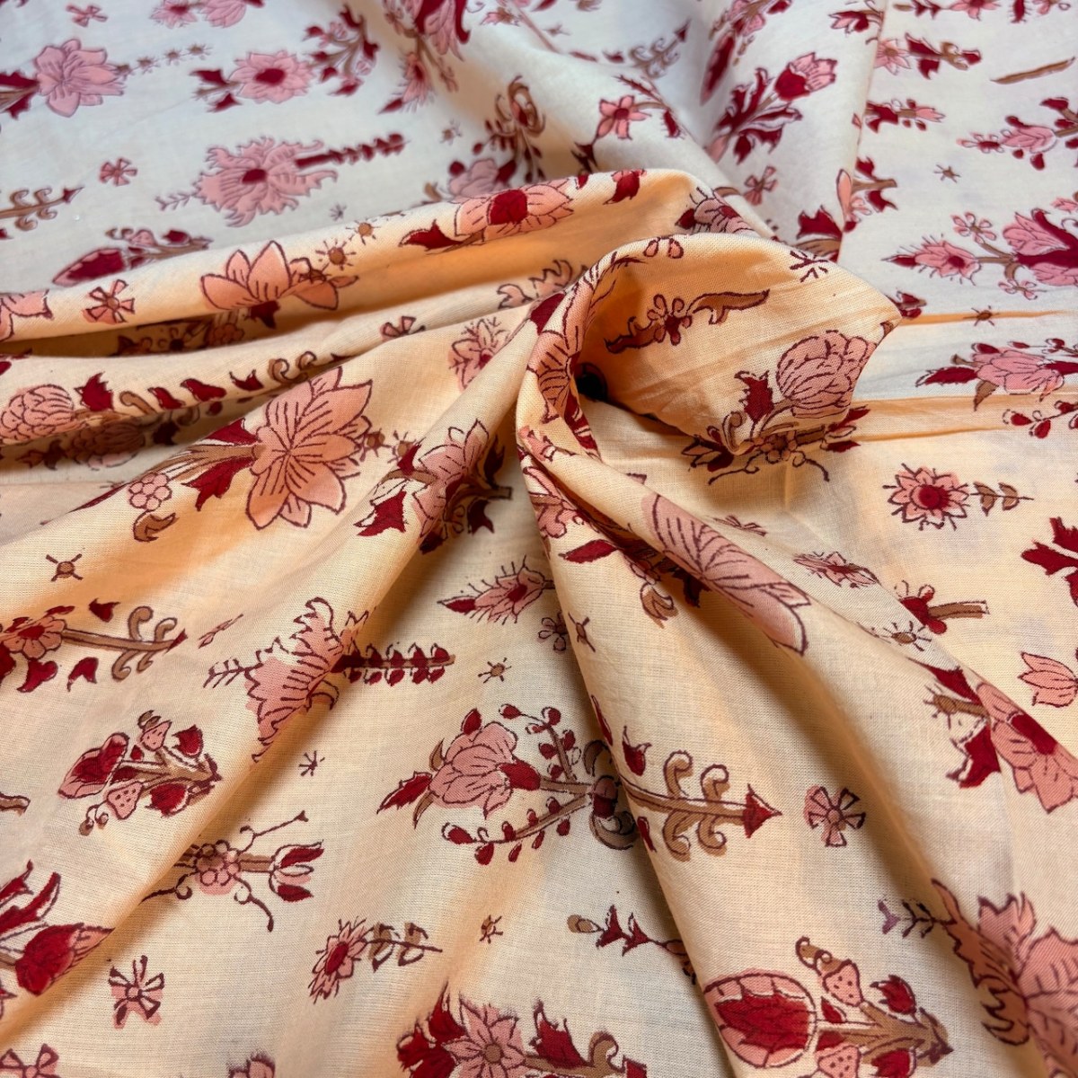 インドの職人による、伝統的な手仕事「ブロックプリント」で仕立てられたコットン生地です。