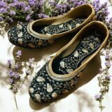 インドの伝統靴・ジュッティは、刺繍やビーズで彩られた美しい平底の靴。